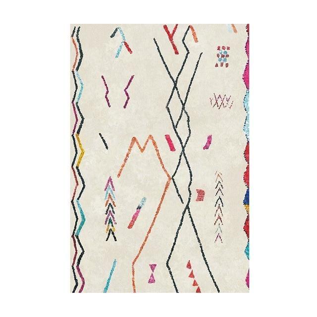 Tämän berberimaton viehätys piilee sen täydellisessä yhdistelmässä perinnettä ja modernia ilmettä. Se on saanut inspiraationsa Pohjois-Afrikan alkuperäisistä berberimatoista, tunnettuina kestävyydestään ja käsintehdystä laadustaan, mutta on saanut modernin, graafisen muodon. Jokainen matto on kuin pieni tarina, jossa siksak-kuviot, pienet neliöt ja vapaamuotoiset viivat luovat dynaamisen ja iloisen kokonaisuuden. Astuessasi tälle matolle tunnet heti sen paksun, nukkaantuneen pinnan pehmeyden jalkojesi alla – se on kuin kävelisit pilven päällä. Maton luonnolliset materiaalit ja lämmin tuntu tekevät siitä ihanteellisen paikan rentoutumiseen, olitpa sitten lukemassa kirjaa, pelaamassa lasten kanssa tai vain nauttimassa rauhallisesta hetkestä.