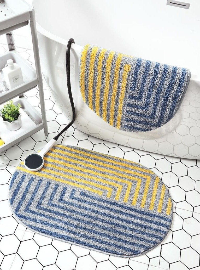 Moderni sinikeltainen liukumaton kylpymatto – Tyyliä ja Turvallisuutta Kylpyhuoneeseesi