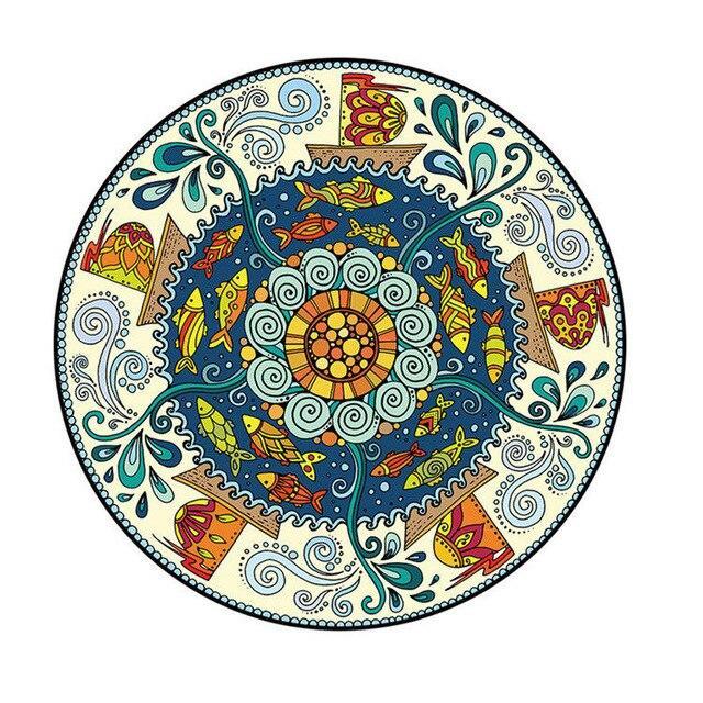 Tämän pyöreän maton pojan vauvanhuoneeseen design on todellinen katseenvangitsija. Maton syvän sininen keskiosa on täynnä iloisesti uivia, erivärisiä kaloja, jotka näyttävät juuri nousevan aaltojen seasta. Reunoja koristaa kauniisti aaltoileva kuvio, jossa pienet veneet purjehtivat ja vesiroiskeet tanssivat. Väripaletti on harkittu yhdistelmä rauhoittavia sinisen ja vihreän sävyjä sekä pirteitä keltaisen, oranssin ja punaisen vivahteita, jotka tuovat eloa tilaan. Maton kuviointi tuo mieleen perinteiset merenkulkuteemat modernilla ja lapsiystävällisellä otteella. Sen pehmeä pinta tuntuu miellyttävältä paljaita jalkoja vasten ja kutsuu heittäytymään lattialle leikkimään ja unelmoimaan vedenalaisista seikkailuista.
